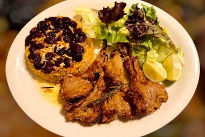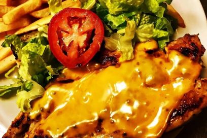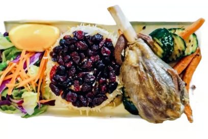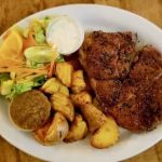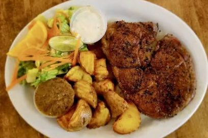 $24.95Herb-crusted chicken breast, Moroccan spices, basmati cajun cranberry rice, mixed greens salad, garlic sauce and homemade steak sauce