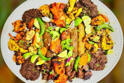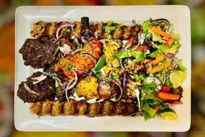 $154.95Our celebrated platter, suitable for four to six persons, showcases an array of Punjabi tikka, lamb and chicken seekh kebab, Lebanese chicken kebob, Souvlakia chicken kebab, tandoori chicken leg quarter, lamb tikka and Mardan chapli kebab, cranberry rice, two naan, green chutney and garlic sauce