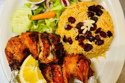$79.95Our celebrated platter, suitable for two to three persons, showcases an array of Punjabi tikka, lamb and chicken seekh kebab, Lebanese chicken kebob, Souvlakia chicken kebab, tandoori chicken leg quarter, lamb tikka and Mardan chapli kebab, cranberry rice, one naan, green chutney and garlic sauce