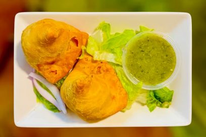$6.95Potatoes filled samosas and green chutney